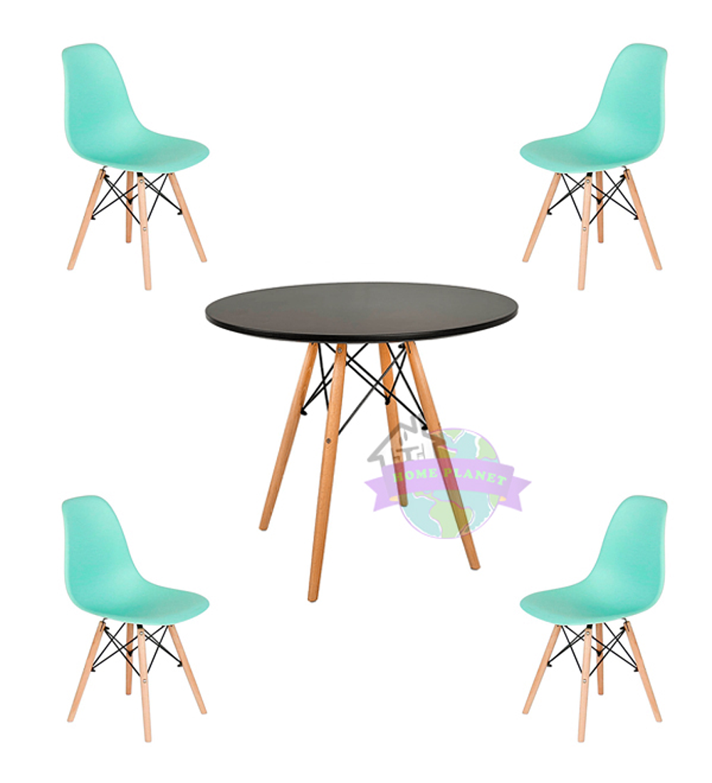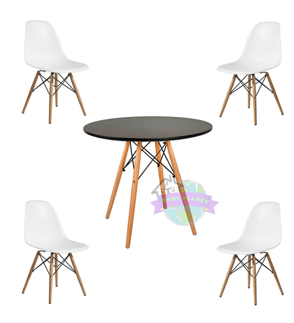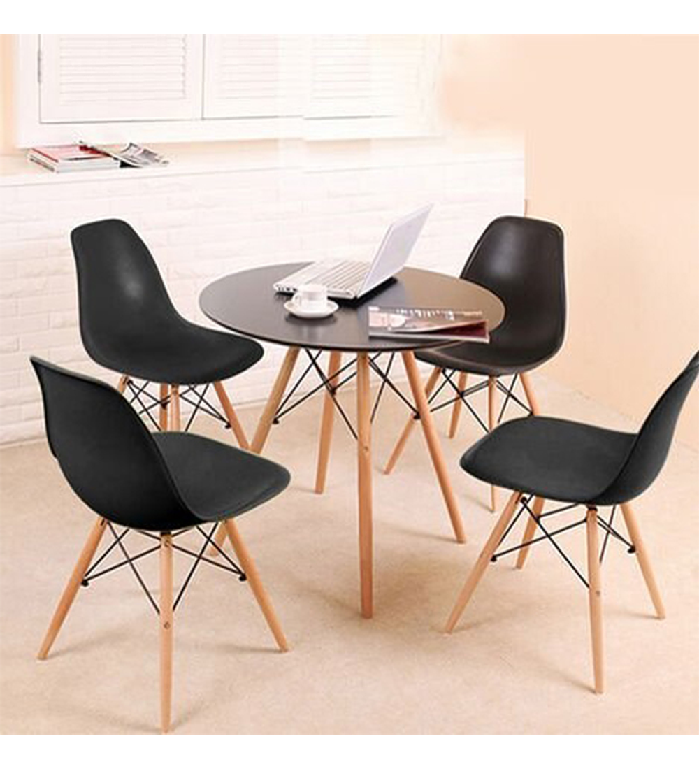 Comedor Argel redondo negro 80 cm con 4 Sillas Eames