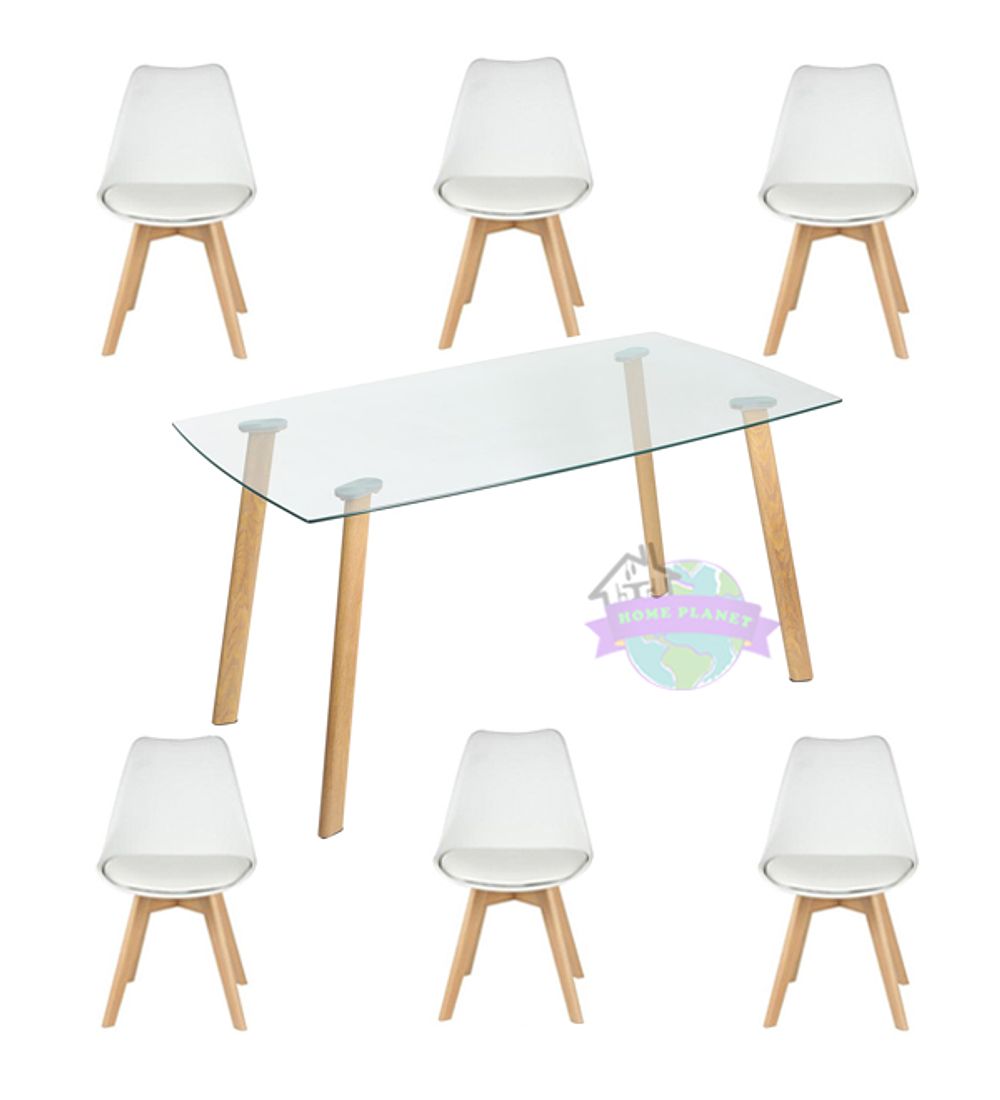 Comedor Bled rectangular vidrio 140x80 cm con 6 Sillas Tulip