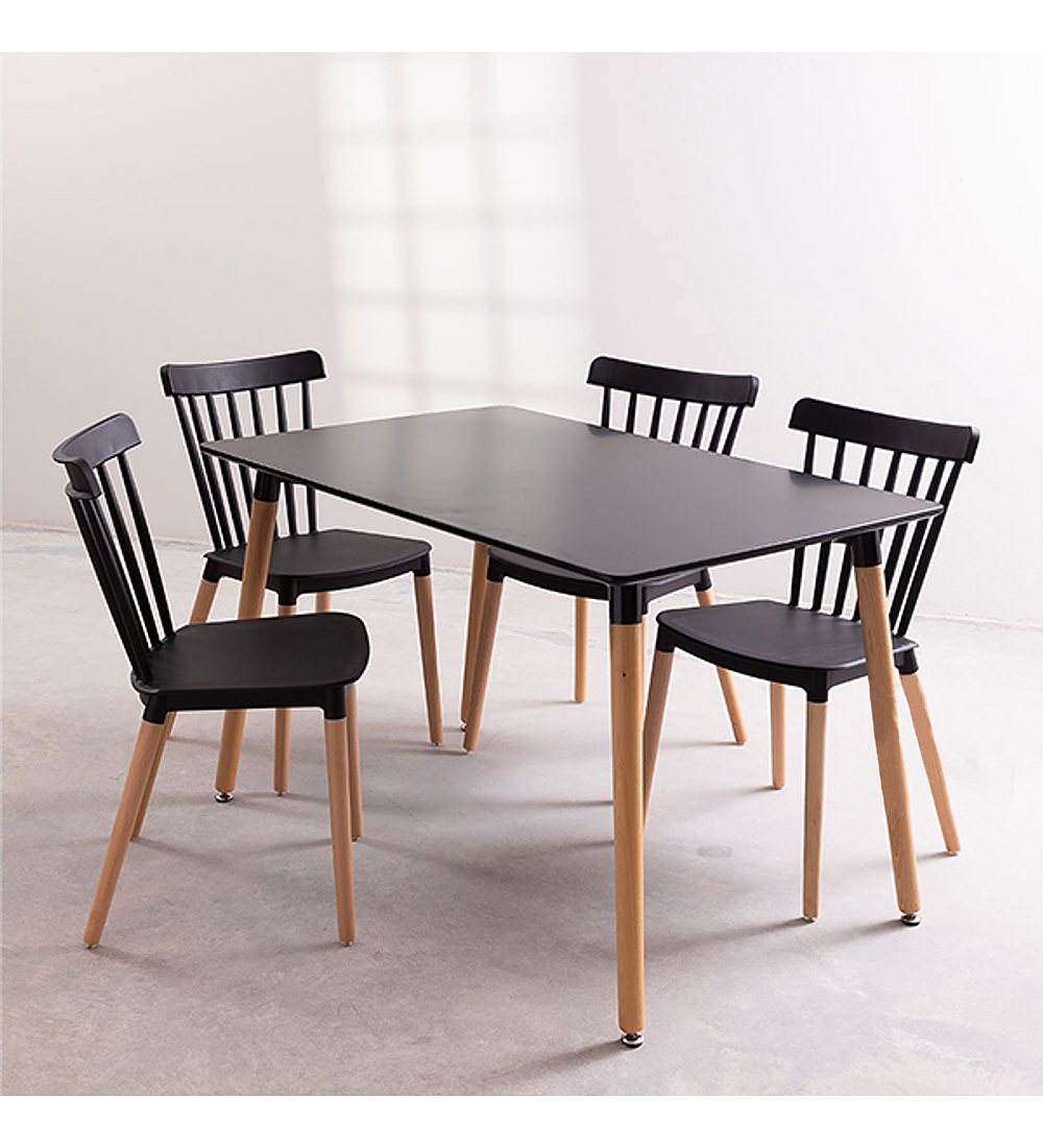 Comedor Capri rectangular negro 120x80 cm con 4 Sillas Windsor