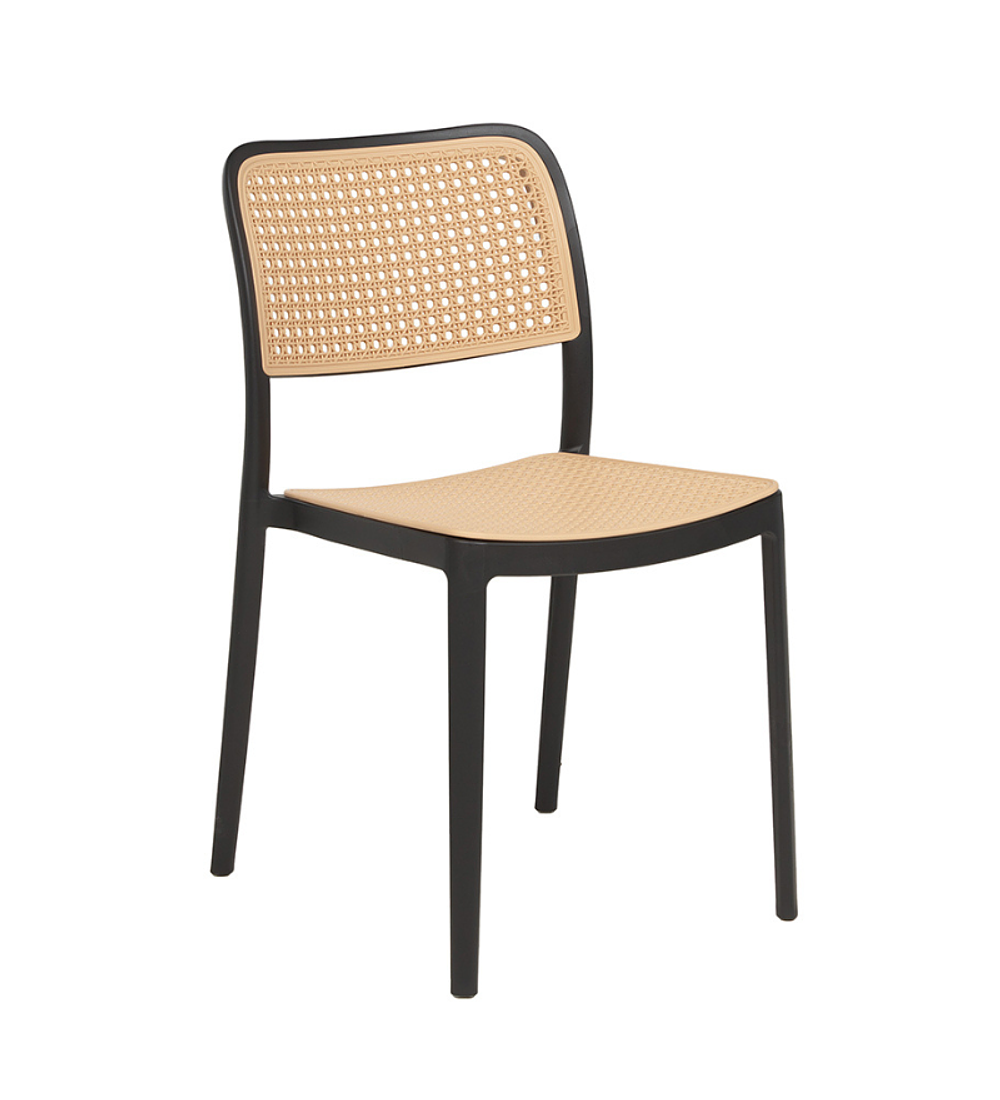Comedor San Francisco redondo madera 120 cm con 4 Sillas Delta Brown de terraza. Sillas estan fabricas en polipropileno mientras que la mesa tiene base de metal acabado en color madera y cubierta de MDF.
