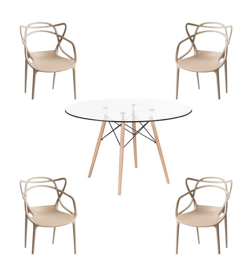 Comedor Sicilia redondo vidrio 100 cm con 4 Sillas Master