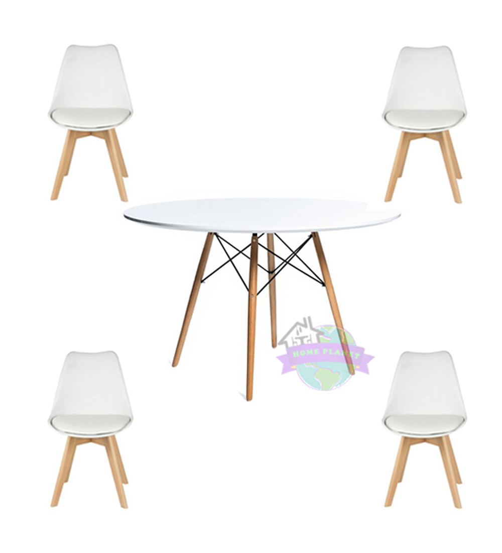 Comedor Taipei redondo blanco 100 cm con 4 Sillas Tulip