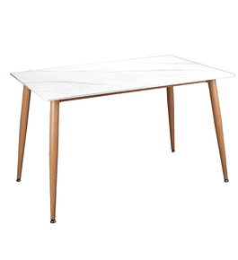 Mesa rectangular Mármol 160x90 cm, con un diseño único y especial que la hace de fácil armado y limpieza (su adherencia entre las patas y la cubierta es con ventosas). Su cubierta diseño mármol y patas son de metal con acabado en color madera, lo cual dará un toque de distinción a tus espacios.