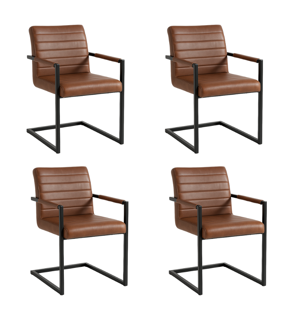 Pack 4 Sillas Industrial de Cuero Sintético – Café