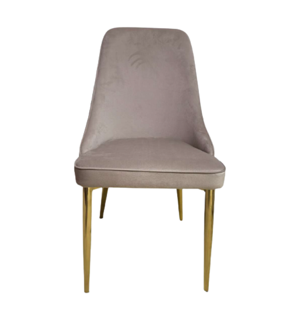 Pack 4 Sitiales Angers Gold, acolchada y con patas de metal en color dorado que le otorgan mayor estabilidad y resistencia. El tapiz es de terciopelo, entregando un toque elegante en combinación con su diseño de patas.