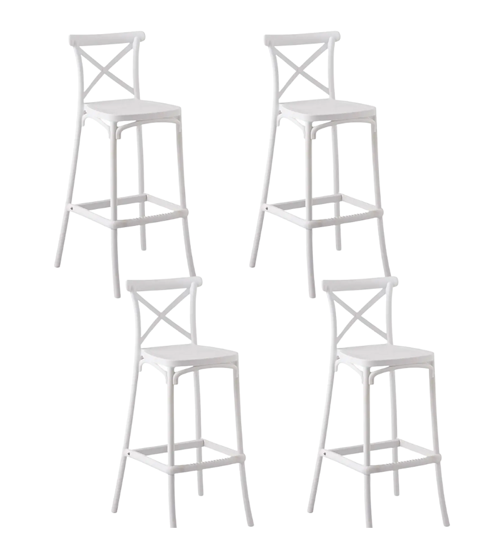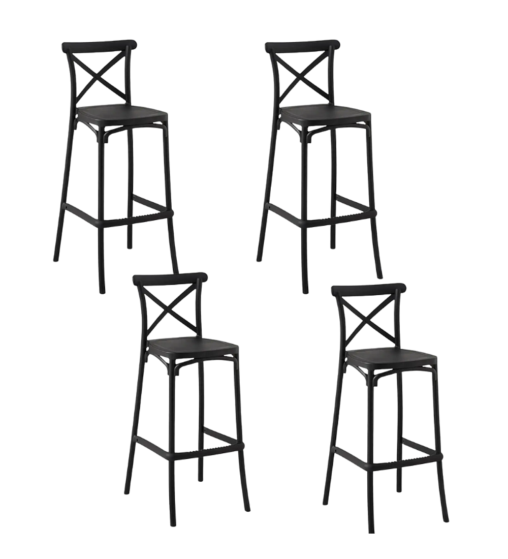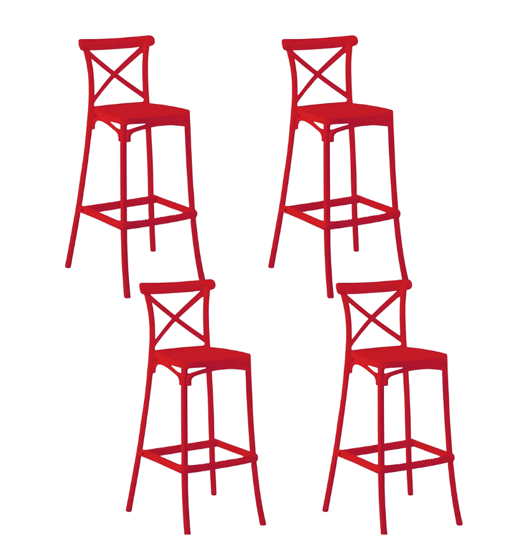 Pack 4 Taburetes Danubio altos, fabricados en material polipropileno y con altura de asiento de 65 cm. Ideales para ser utilizados en cafeterías, bar, quinchos, bistrós, restaurantes y mas.