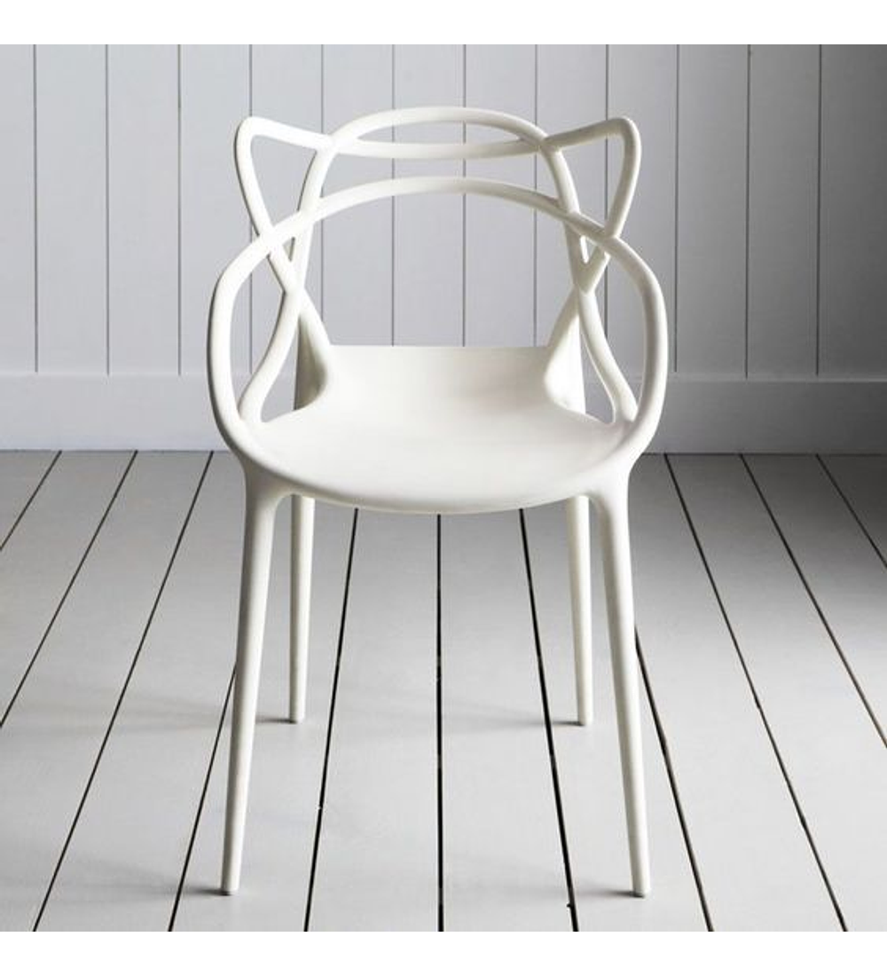 Silla Master. La Masters Chair nace fruto de la colaboración entre Philippe Starck y Eugeni Quitllet. El toque distintivo de la silla viene dado por la versatilidad del respaldo, caracterizado por las superficies macizas y los huecos creados por el entrelazado curvilíneo de las tres siluetas que descienden hasta confluir en el perímetro del asiento. Una pieza única con un marcado estilo contemporáneo. Añade un toque de sofisticación, eficiencia y elegancia a tus espacios con la Silla Master.