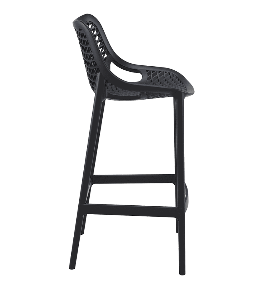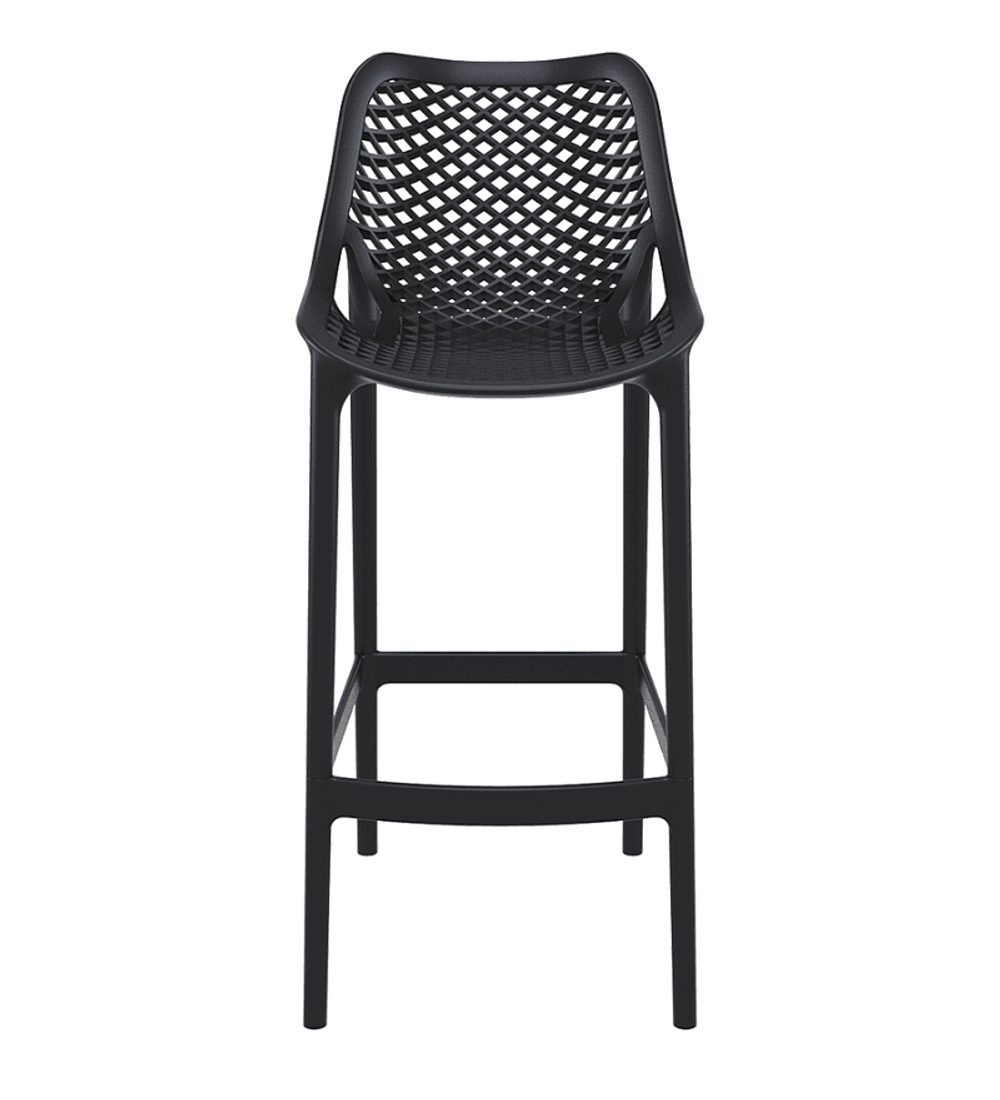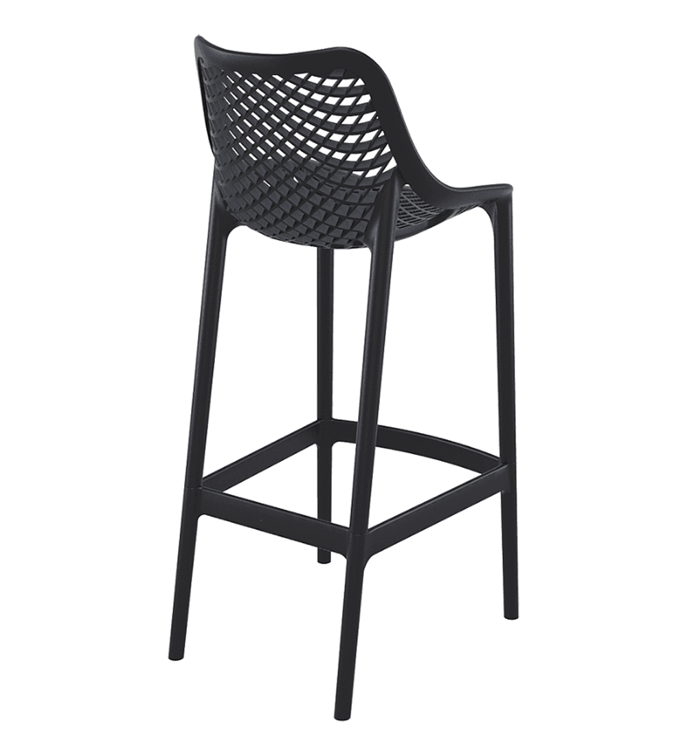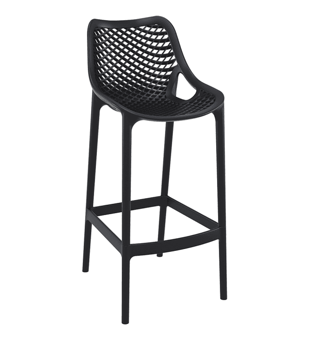 Taburete de terraza Rostock en color negro con altura de asiento de 65 cm , fabricado con materiales resistentes a la intemperie, esta taburete no solo es duradero, sino también elegante. Su diseño moderno se adapta a cualquier espacio exterior e interior y su color le brinda un toque de sofisticación y versatilidad. ¡Son apilables!
